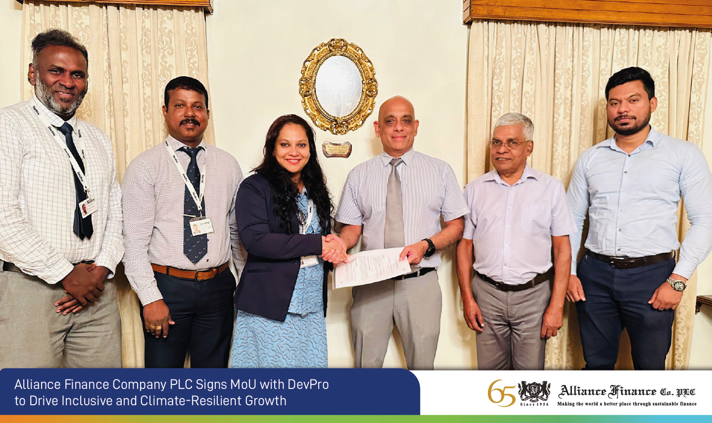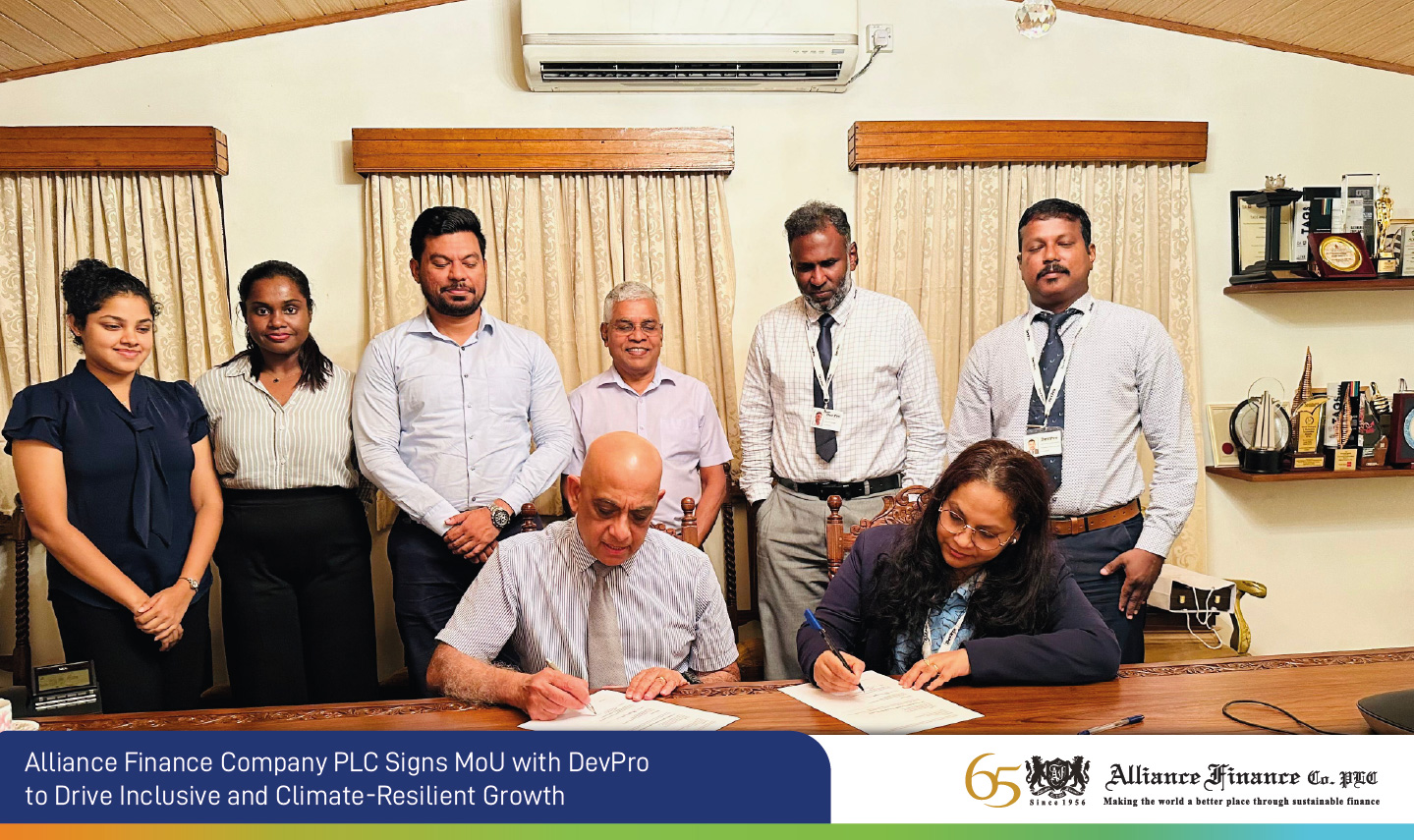 Marking a significant milestone, DevPro signed a Memorandum of Understanding (MoU) with Alliance Finance Company (PLC) to Promote Innovative Financing for Inclusive Economic Development. The MoU was signed by the Executive Director of DevPro, Chamindry Saparamadu and the Deputy Chairman/Managing Director of AFC, Romani de Silva in the presence of officials from both organizations on 11th September.